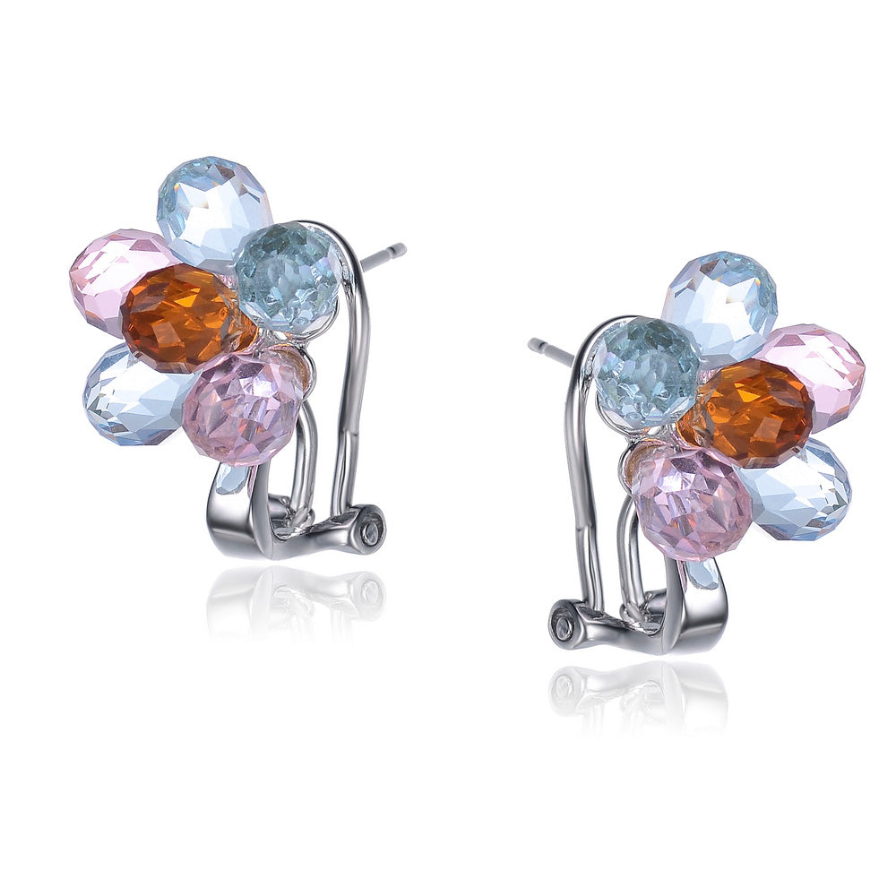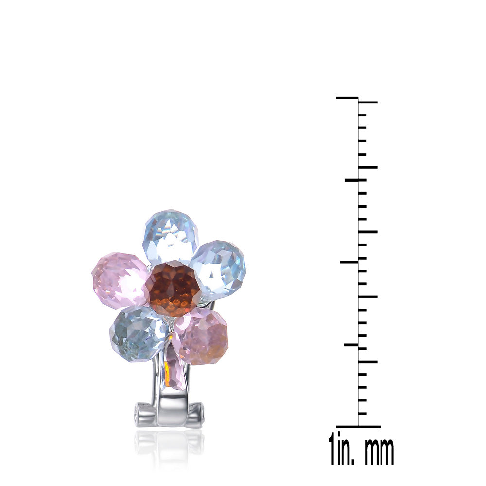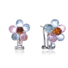 These creative sterling silver flower earrings are a great option to freshen up any look. They boast light blue, light purple and deep yellow cubic zirconia stones.