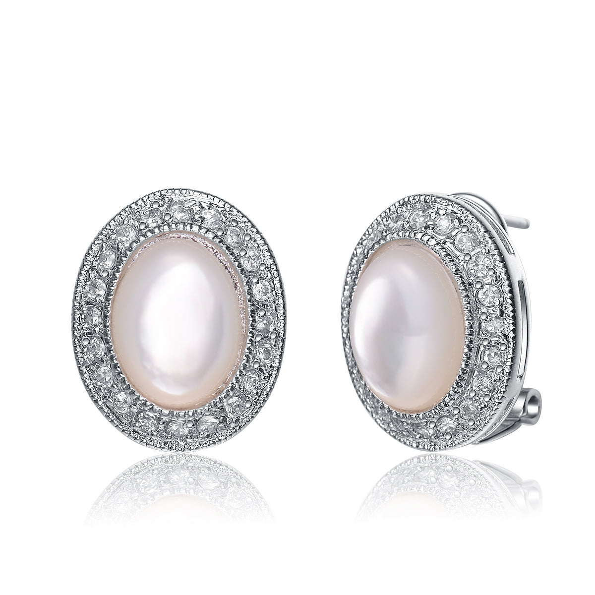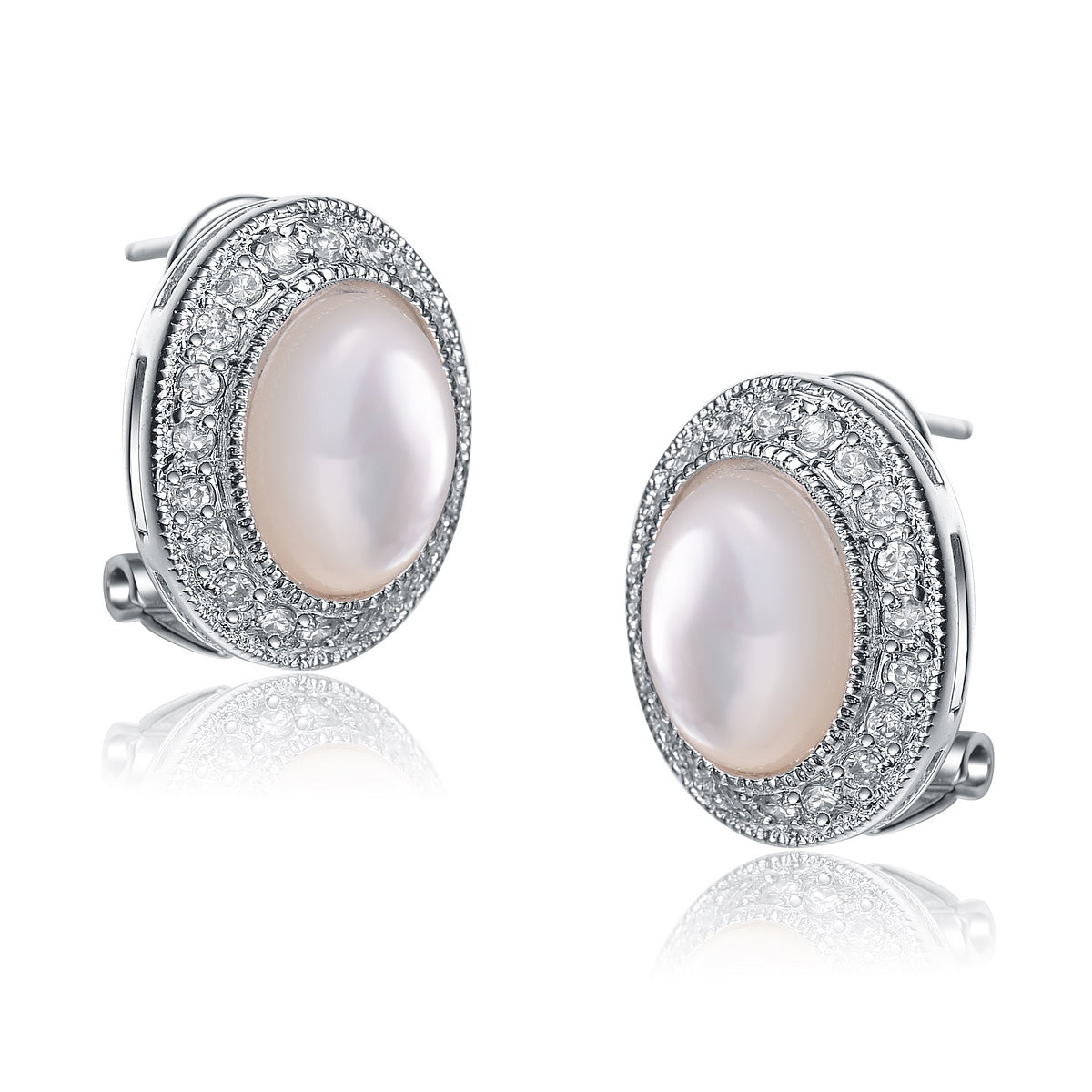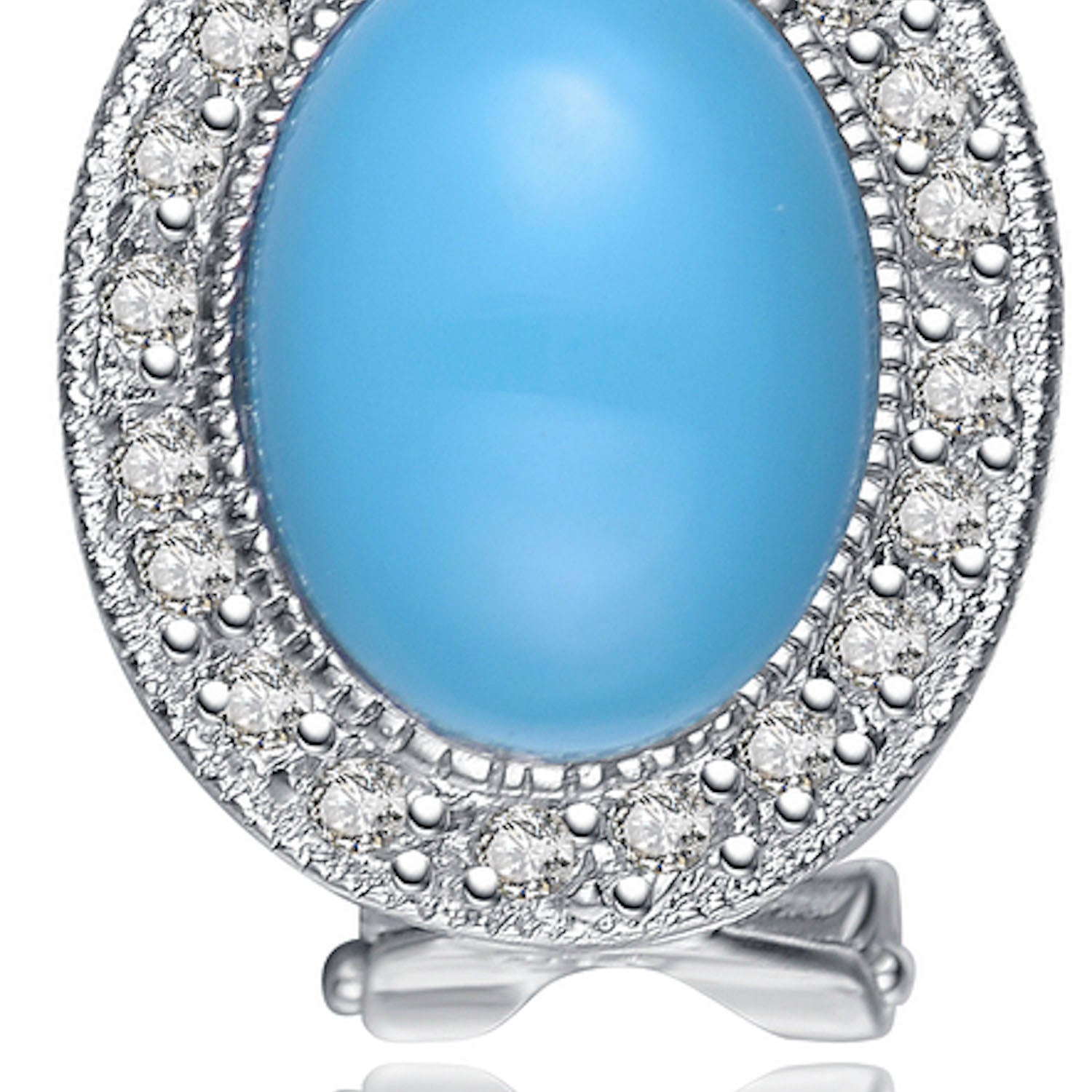 A modern twist on a classic, these faux pink opal earrings are delicate and sweet. Each piece is encircled with sparkly white cubic zirconia solitaires. Also available in Blue.