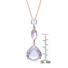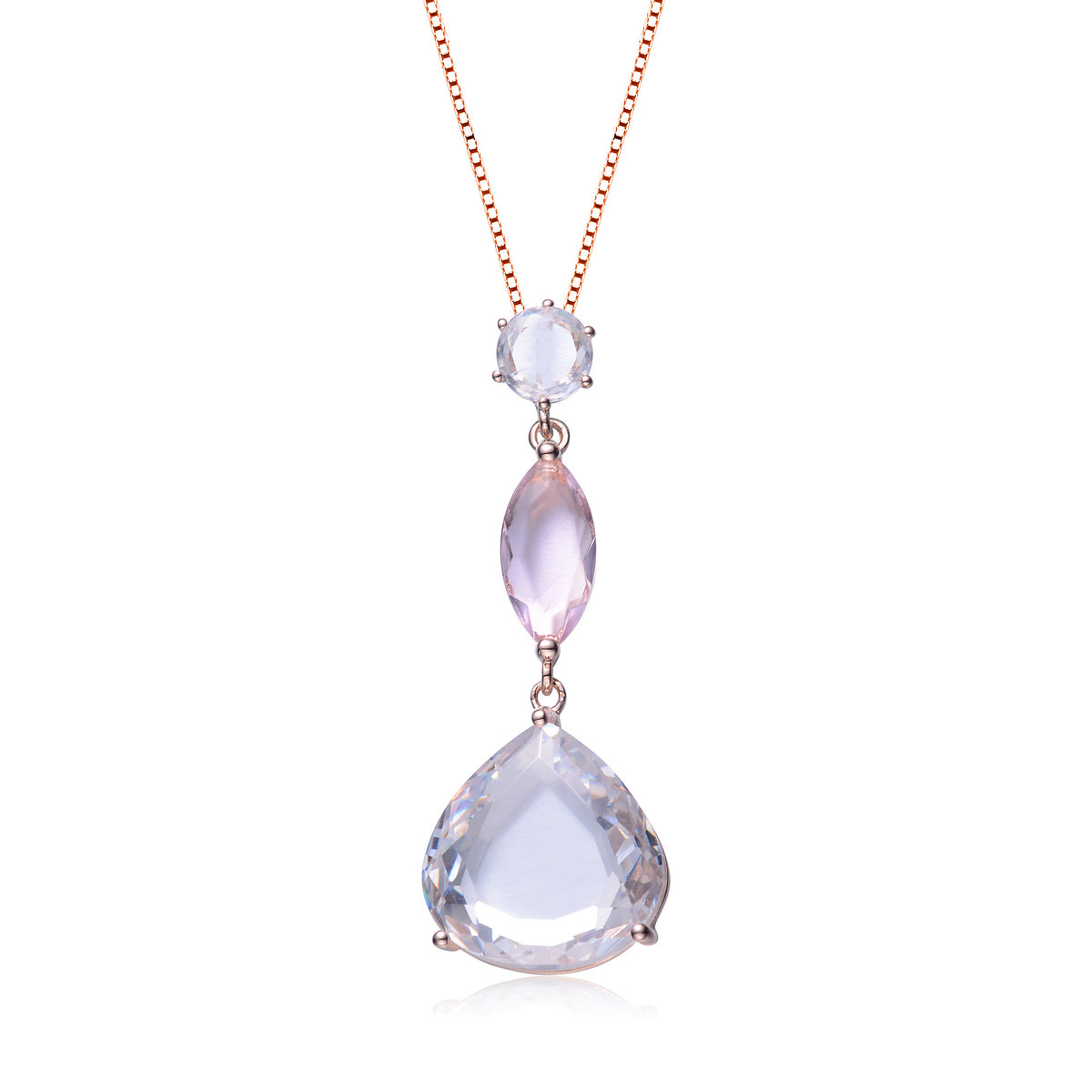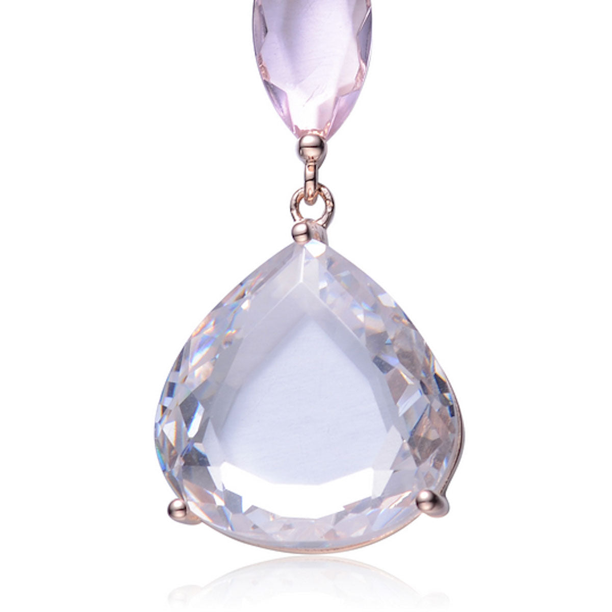 This precious pendant features light pink round and pear-cut cubic zirconia stones. Crafted of .925 sterling silver, with rose gold plating, the necklace secures with a spring ring clasp.Whether worn for a special occasion or as a statement piece, it’s sure to turn heads and capture attention.