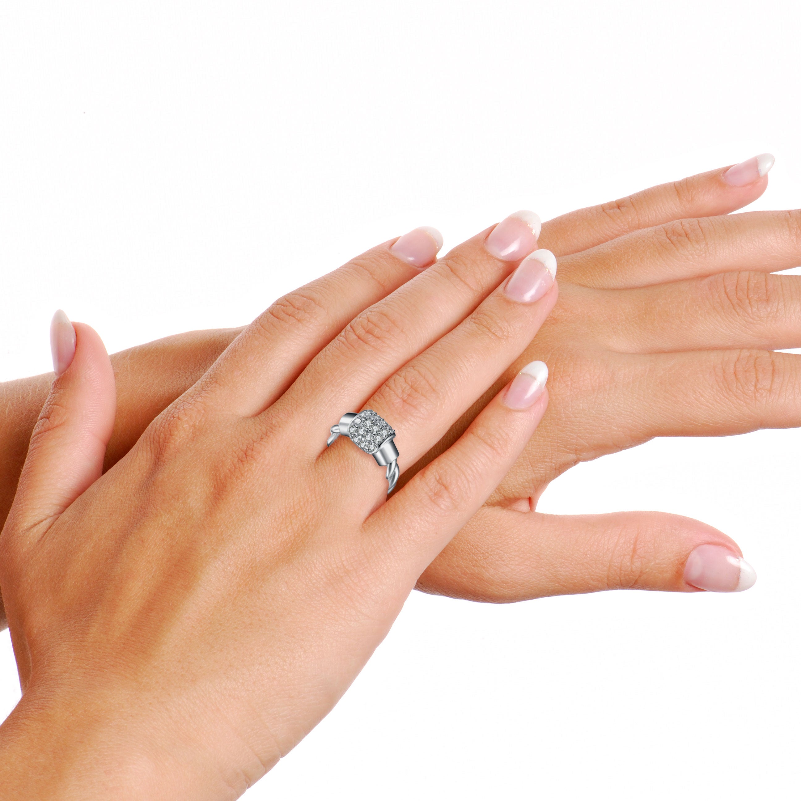 This sterling silver ring provides a futuristic Twisted design. It cleverly uses clear cubic zirconia stones to add another dimension. It surely brings much pride to the owner. Available in ring sizes 6, 7, 8.