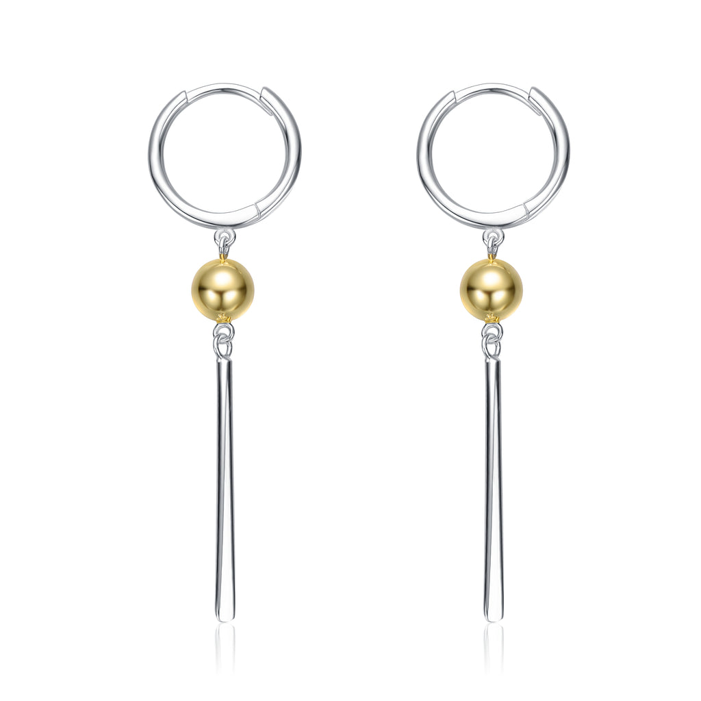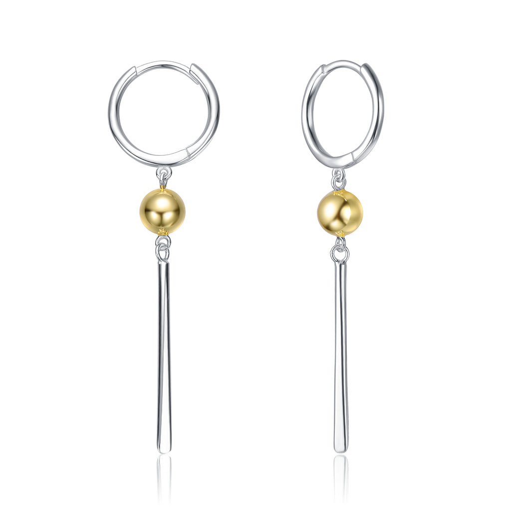 Elevate your look with our Sterling Silver Two-Tone Drop Earrings. Featuring a stunning 14K Gold Plated sphere, these earrings combine modern elegance with timeless design. The sleek White Gold Plated bars dangle gracefully, creating a beautiful contrast that enhances any outfit. Perfect for both day and night, they offer versatility for any occasion. Crafted with quality materials, these earrings are designed to last while adding a touch of sophistication to your jewelry collection.