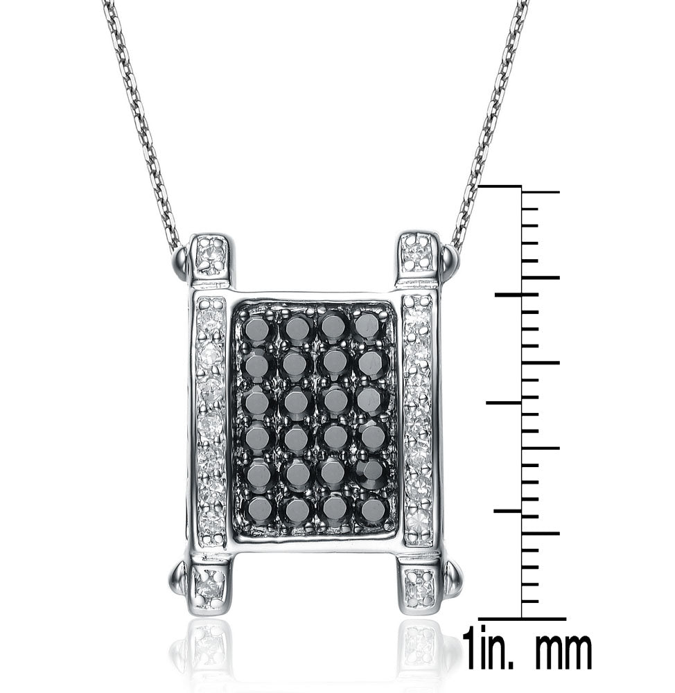 Multiple black cubic zirconia rest in a pave setting in a rectangular sterling silver frame bordered on two sides with white cubic zirconia. This stunning Black & White combination works well with any outfit for any occasion.