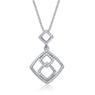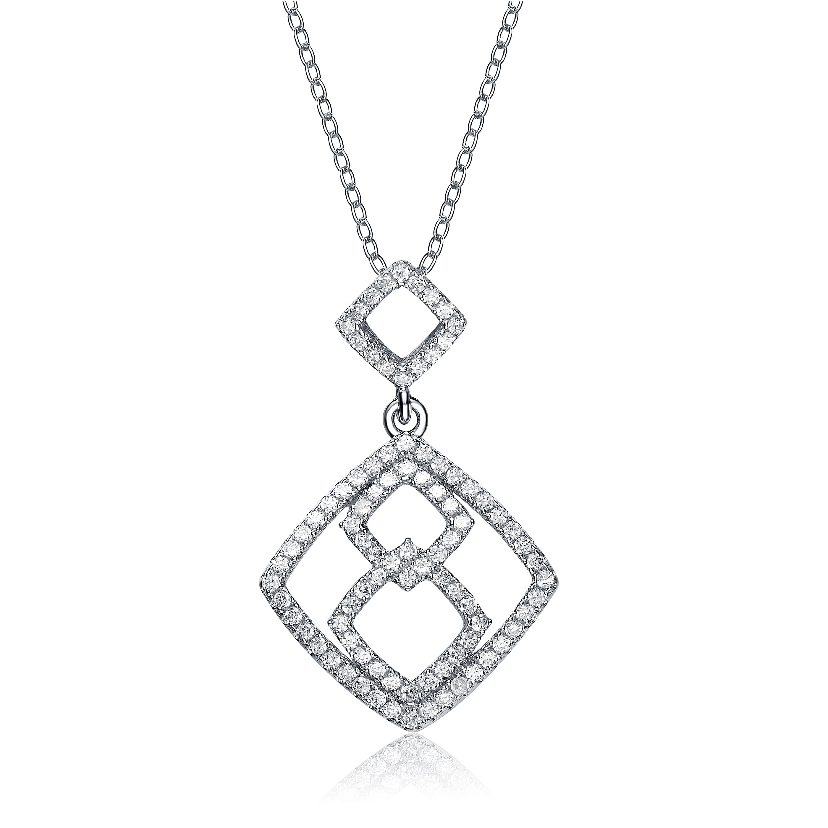 Made of white cubic zirconia and sterling silver, this geometric pendant consists of 2 intertwining outlines inside a larger outline. Simple yet fashionable, this necklace will work well with any dress for any occasion.