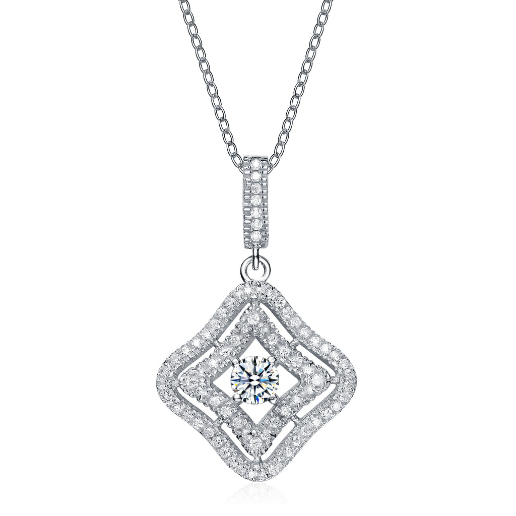 This simple geometric design with rounded edges is a great gift for someone with style and a fashion sense. This pendant is made of white cubic zirconia and sterling silver in a startling design that accentuates the wearer’s beauty.