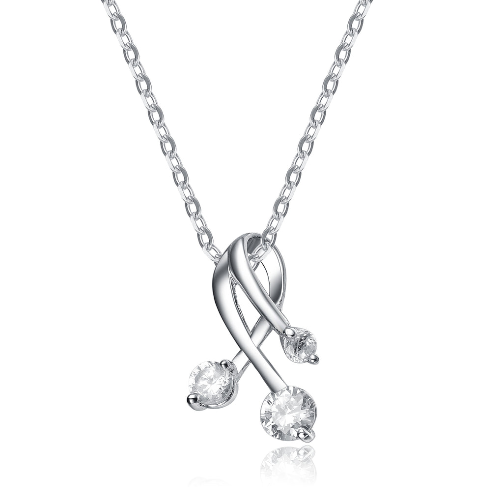 This is a whimsical sterling silver pendant with a design that seems to look like three small flowers with a rhodium-plated stem and large white cubic zirconia stones. The three pieces merge at the top forming a secure clasp which holds onto a rhodium-plated necklace chain; it is perfect for casual daily wear.