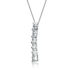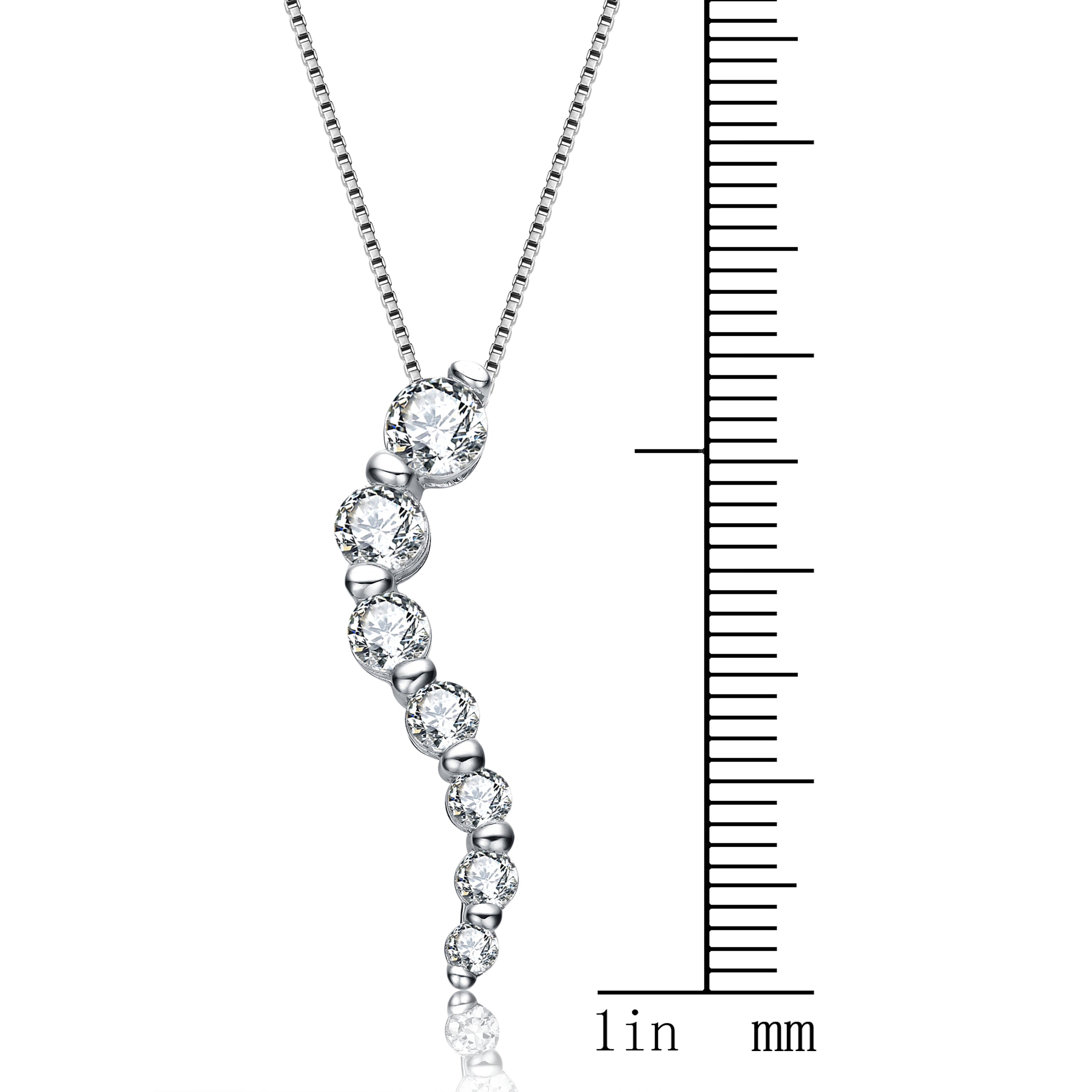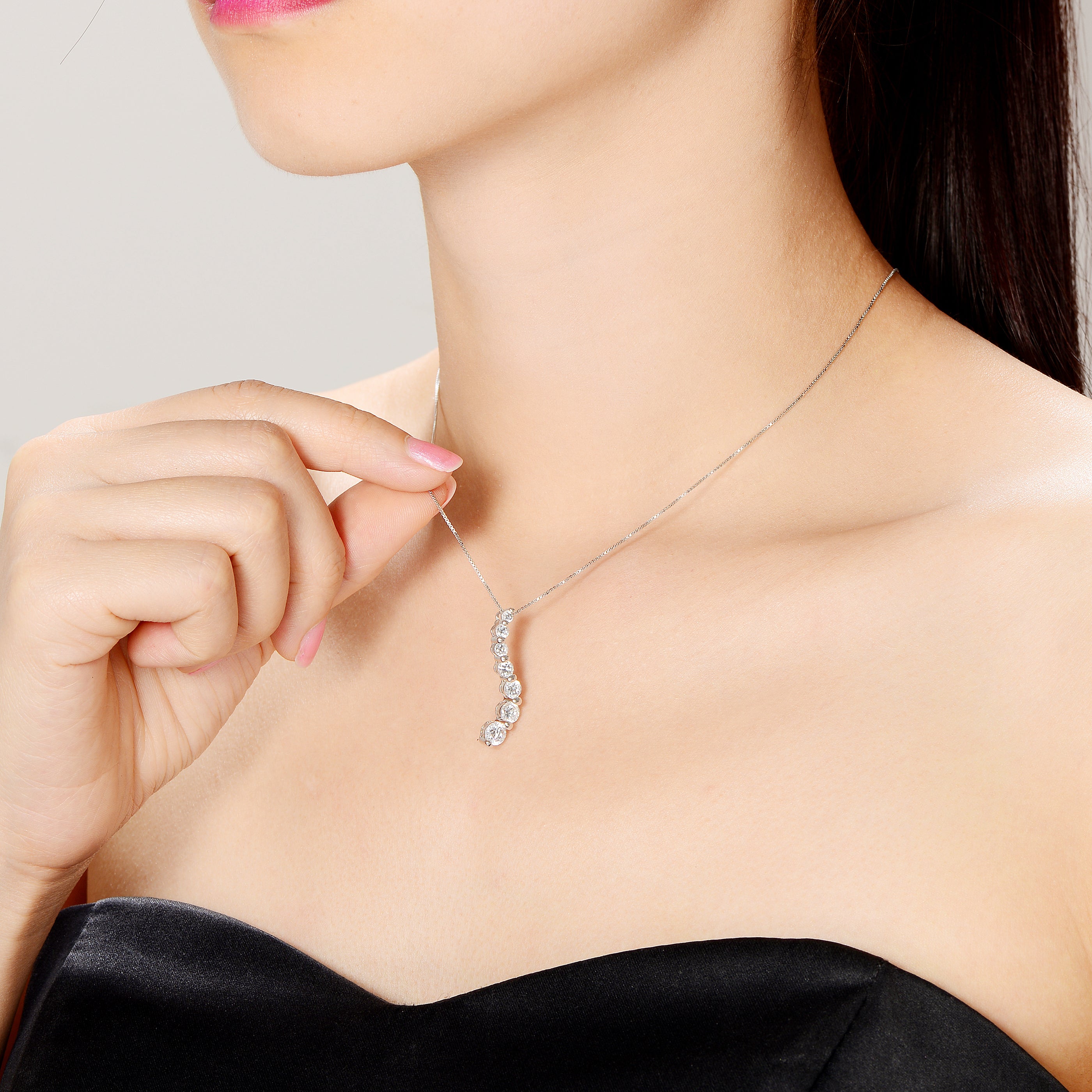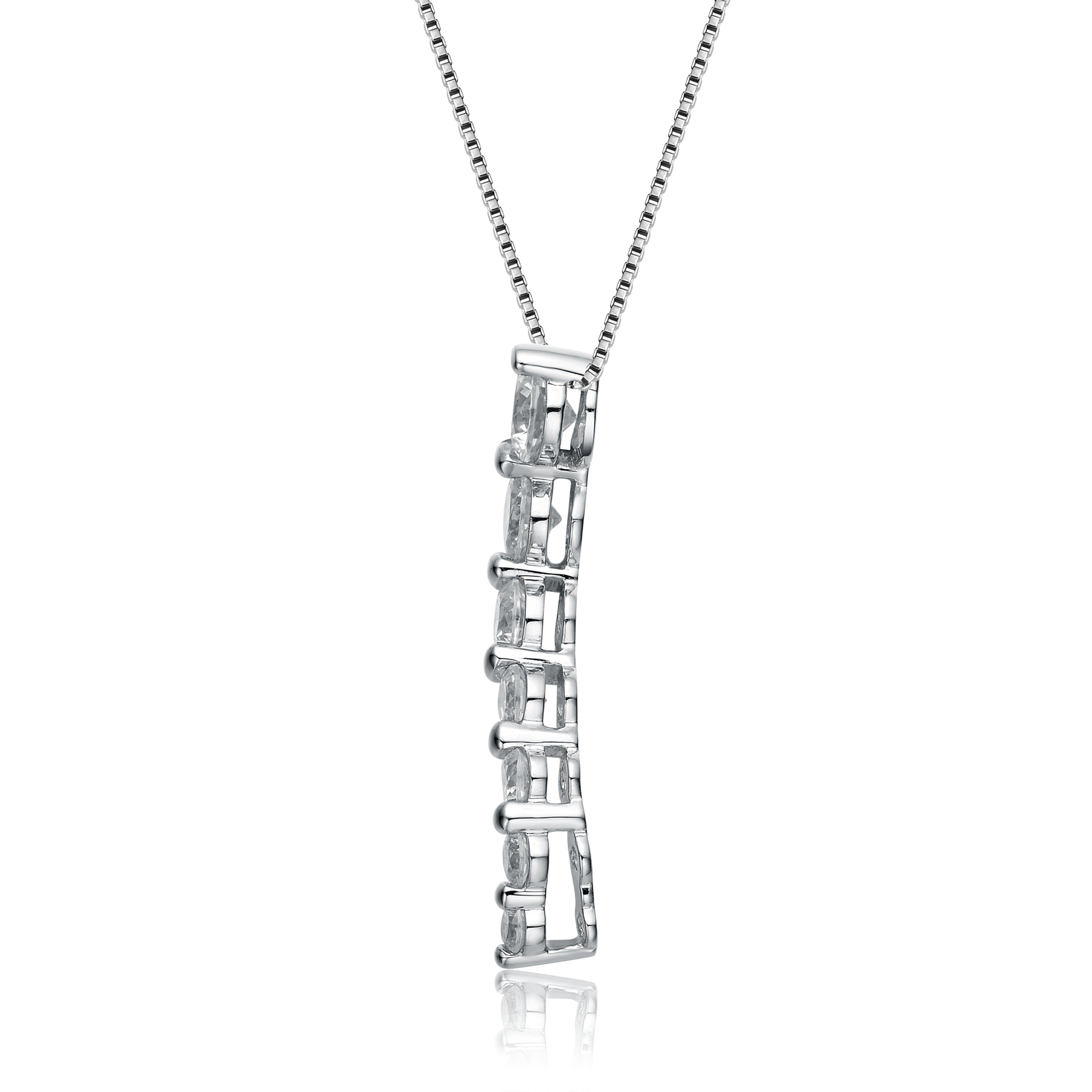 This sterling silver pendant has a unique design consisting of white clear zirconia stones in varying sizes – from a large piece to the smallest size. These stones are arranged in size and is held in place by a clasp located at the back of the largest stone; unique and lovely perfect for any formal occasion.