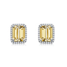 Add a touch of sunshine to your style with these sterling silver earrings, plated in white gold for a refined finish. Featuring vibrant yellow square-cut cubic zirconia stones, encircled by a radiant halo of clear zirconia accents, these stud earrings offer a balance of charm and sophistication-perfect for brightening up both casual and formal outfits.