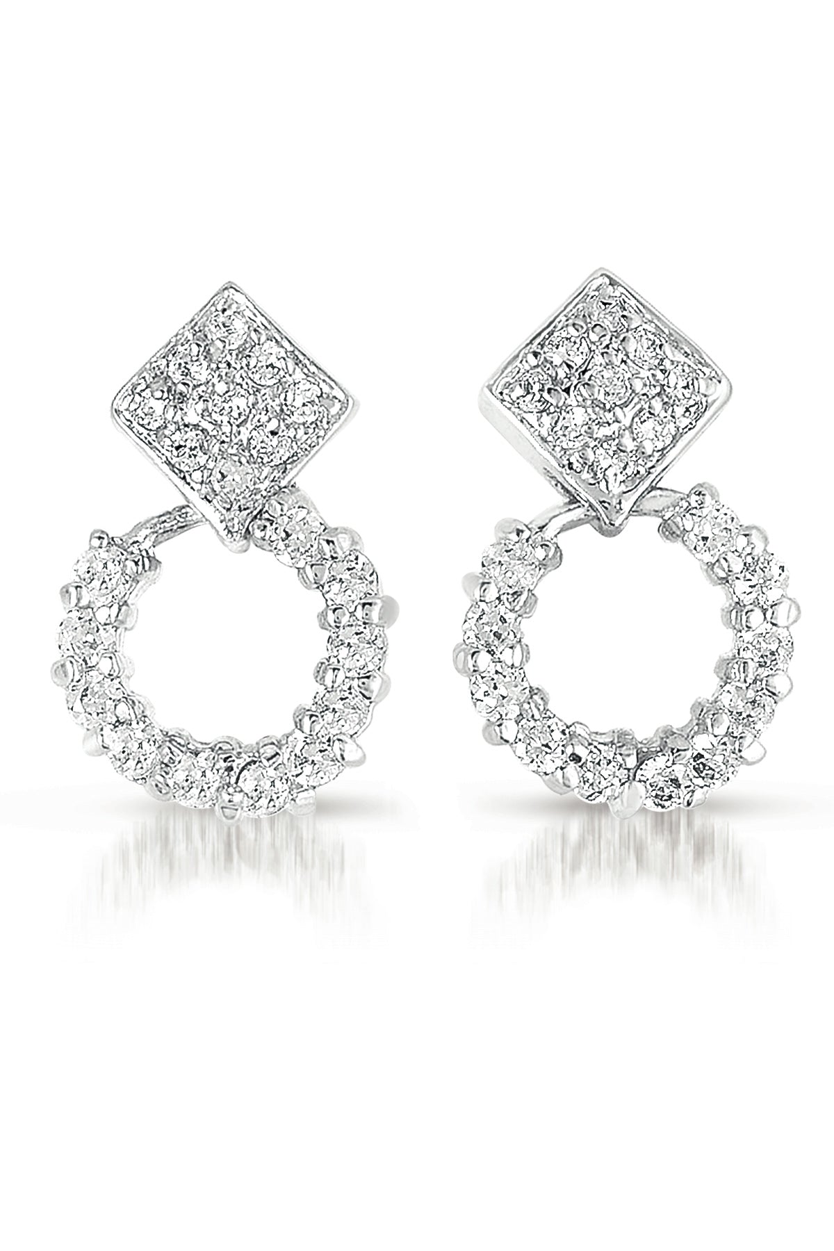 Truly an eyefull, this sterling silver earring piece has a remarkably- lovely design. Each piece has numerous mini clear white cubic zirconia stones arranged to create a blasted effect especially on the large, flat, -shaped surface where every stone is set to dazzle you each time.