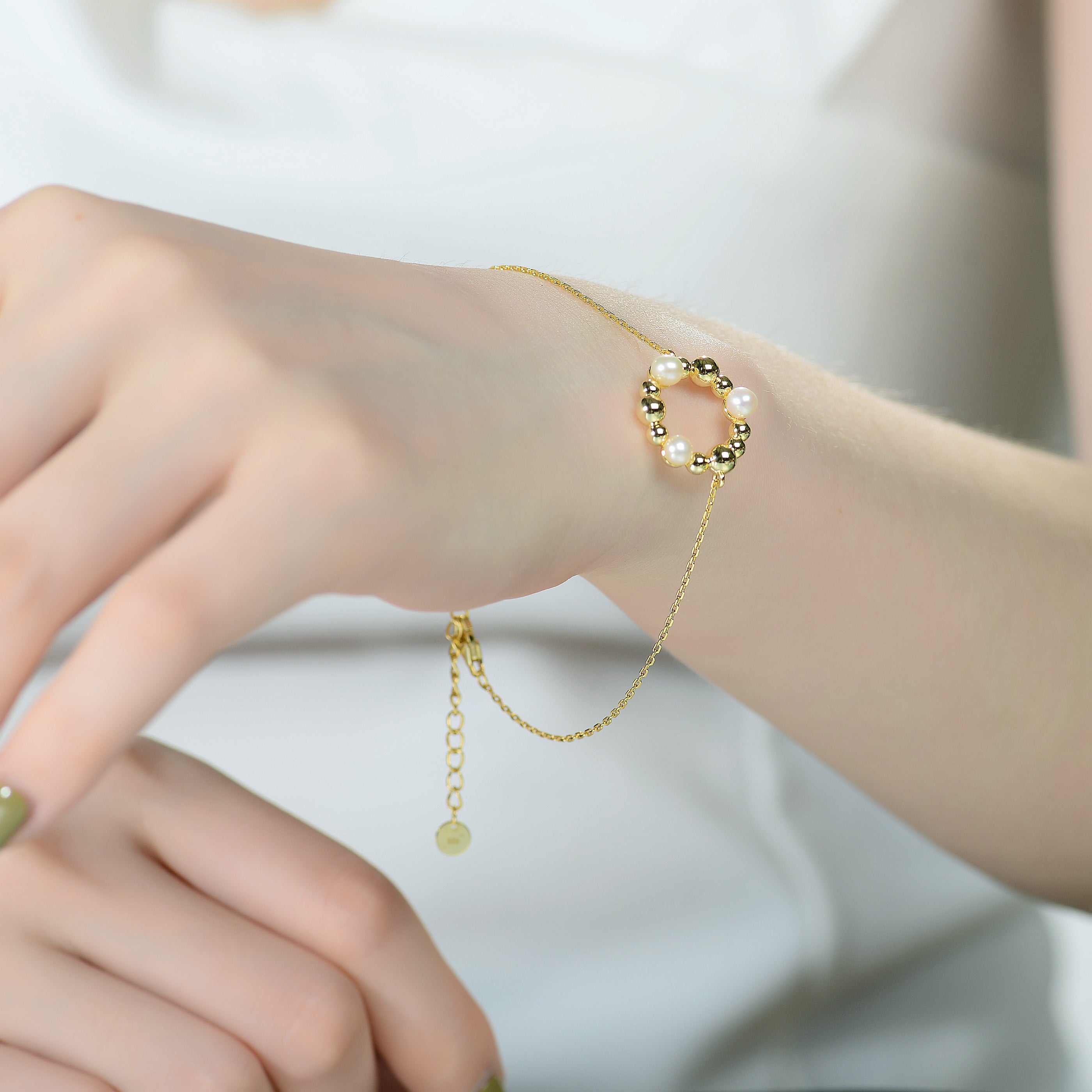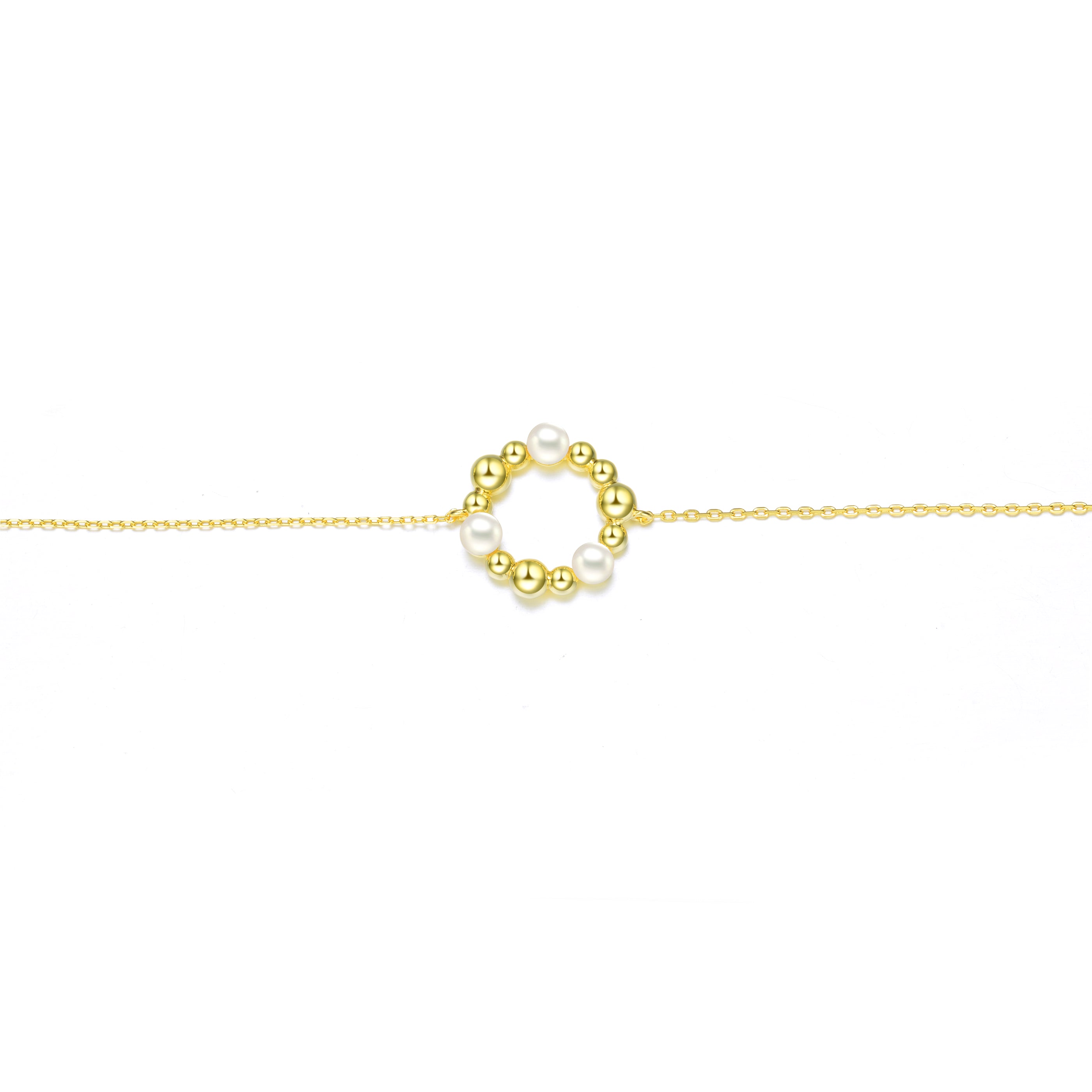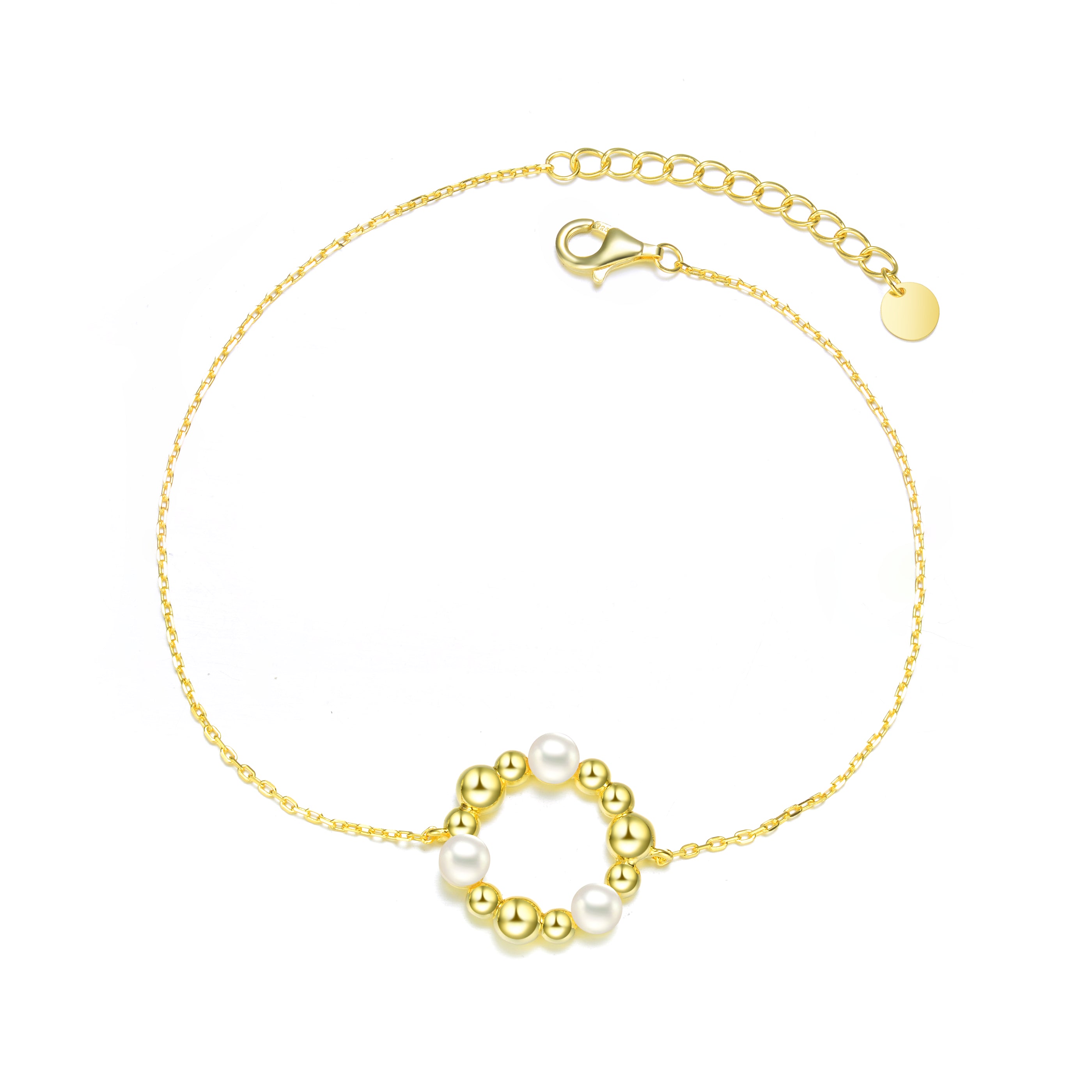 Discover timeless beauty with our Round Bracelet. Sterling Silver and 14K Gold Plating adorned with 4MM Freshwater Pearls. Elegant and versatile, perfect for any occasion. Elevate your style with this exquisite piece.