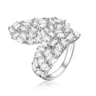 Skillfully crafted, this astonishing spoon type ring is accented with clear tapered baguette Cubic Zirconias is set in Sterling silver with Rhodium plated. The unique clustered design makes it more surprising and pleasing to the eye.